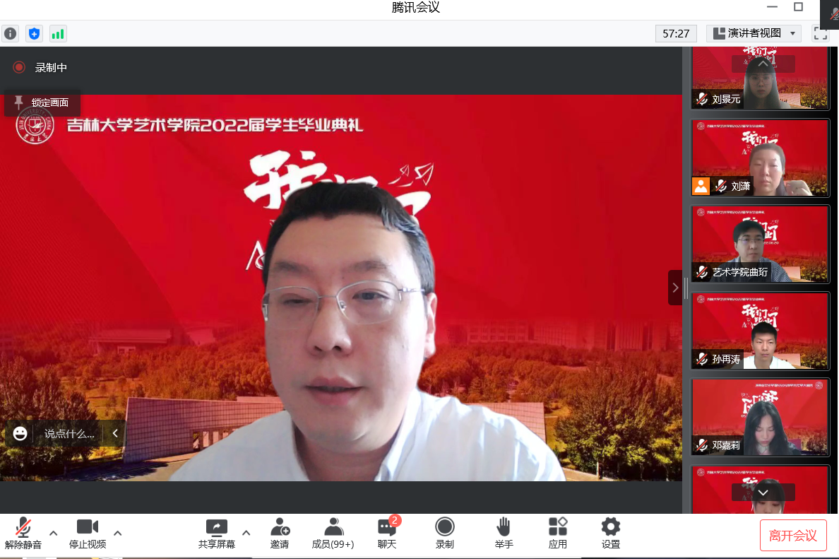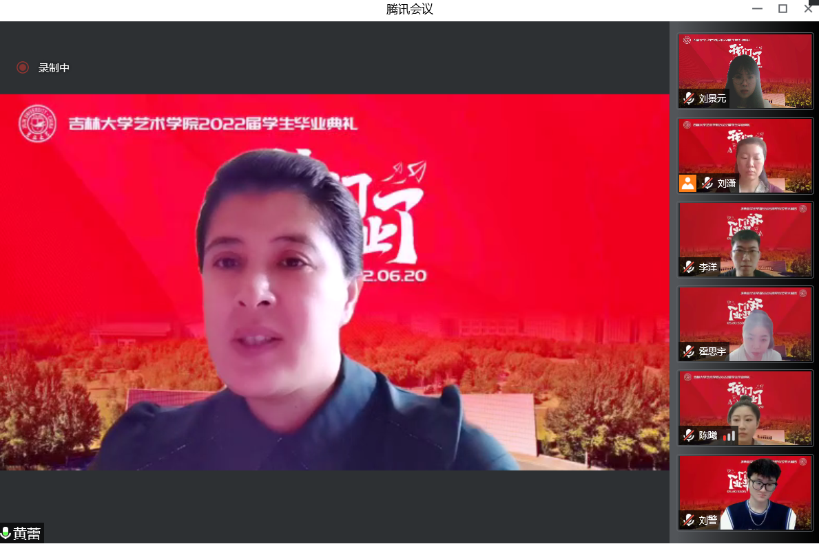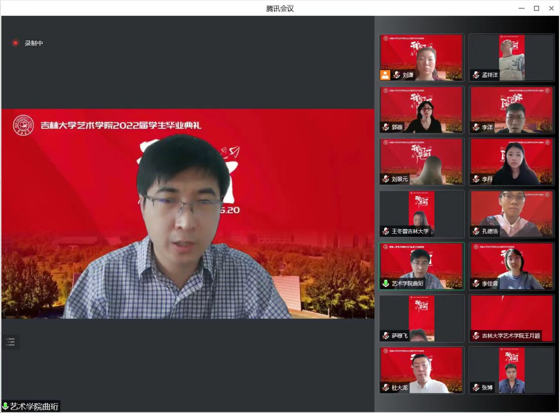 w66旗舰厅经理郭春方教授致词。他以《文以载道艺以弘德》为题,从三个方面与毕业学子分享关于艺术与人生追求的思考,作为母校为同学们准备的最后一份“毕业礼物”。一是文艺创作,要为时代放歌。文艺是时代前进的号角,文艺创作只有植根现实生活、紧跟时代潮流,才能真正做到思想精深、艺术精湛、制作精良。疫情暴发以来,全院师生创作了系列以抗击疫情为主题的优秀作品,讲述着我们身边的抗疫故事。文艺最能代表一个时代的风貌,也最能引领一个时代的风气。在以“艺”抗疫的征途上奋勇向前,在前所未有的困境中携手前行,共同感受着党和国家在抗击灾难时所爆发出的巨大能量,力尽所能地肩负起吉大人的使命与担当。二是文艺创作,要扎根祖国大地。当代的中国文艺,是包含艺术哲学与精神内涵的时代产物,是反映中华民族精神面貌与审美趣味的文化沉淀,是能够服务于国家需求并引领结构创新的艺术符码。需要在复杂的时代价值环境中,注重全球共识性与民族个性的融通,注重中国语境与国家文明的坚守。扎根祖国大地,发出中国声音,讲述中国故事,扩大“中国艺术”的影响力,是每一名文艺工作者义不容辞的使命与责任。三是文艺创作,要回应民之关切。“中国艺术的生命精神,就是一种以生命为本体,为最高真实的精神”。艺术的真实来源于生活,并对其进行提炼和萃取。文艺工作者的世界观决定了创作过程中的立场、态度和情感。修辞立其诚,艺术之路上,思想的高度、文化的传承、科技的创新,都离不开以人民为中心的创作导向。正如七十六载来,吉大以毫不利己、专门利人的白求恩精神;以一路向北、扎根东北的“北上精神”;以心有大我、至诚报国的黄大年精神,为国家的发展、民族的振兴、社会的进步作出了巨大的贡献。