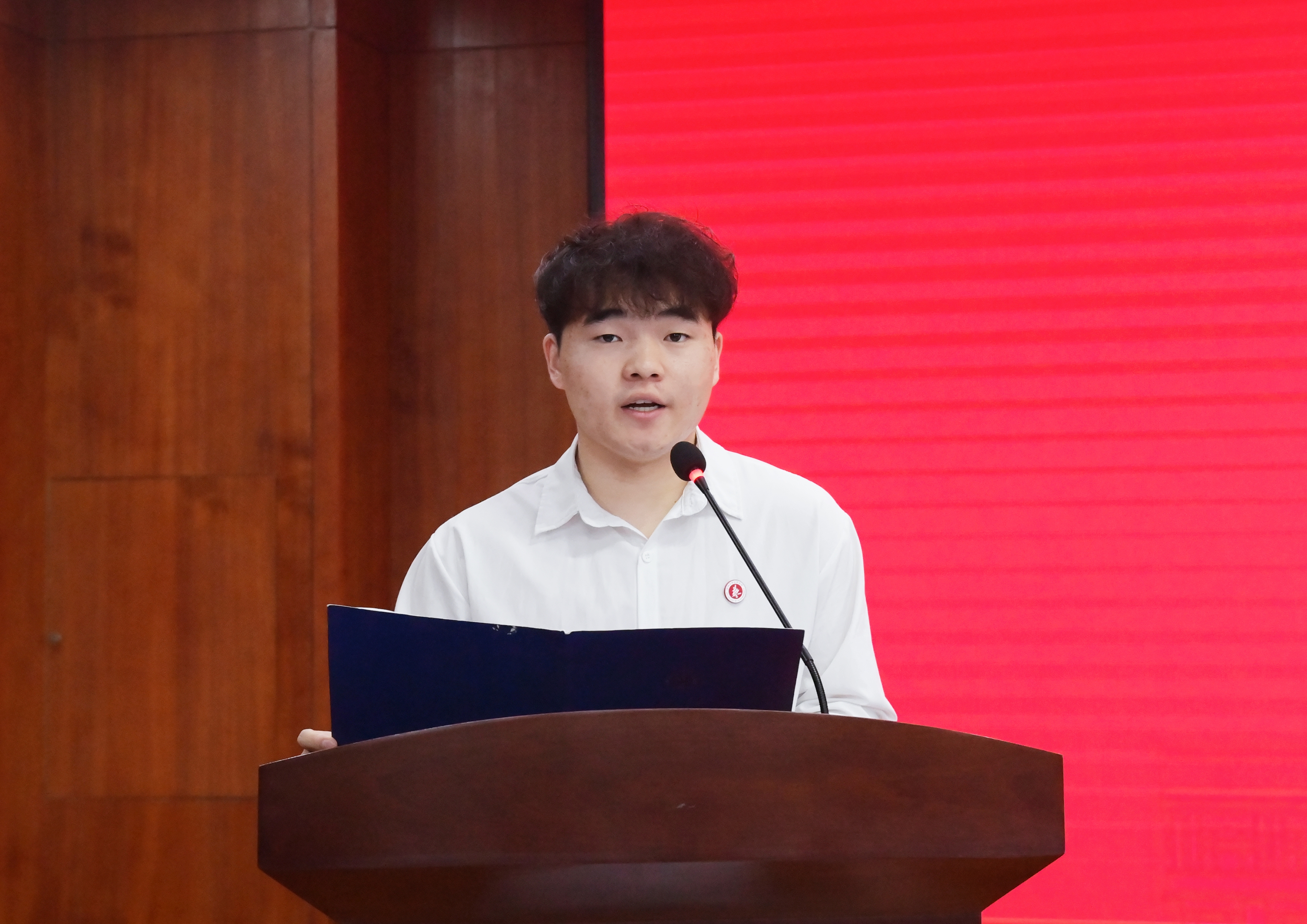 在校生代表2021级设计系陈正康同学发言,他代表公司全体在校生向即将毕业的学长学姐们表达了最衷心的祝贺和最真挚的祝福。他祝愿学长学姐们在人生的航程中,毫不畏惧、大步向前,带着美好祝福去拥抱未来,在自己所热爱的领域里闪闪发光,再绽新芒;能够不忘初心,保持航向,用勇气和智慧驾驭每一次波涛。