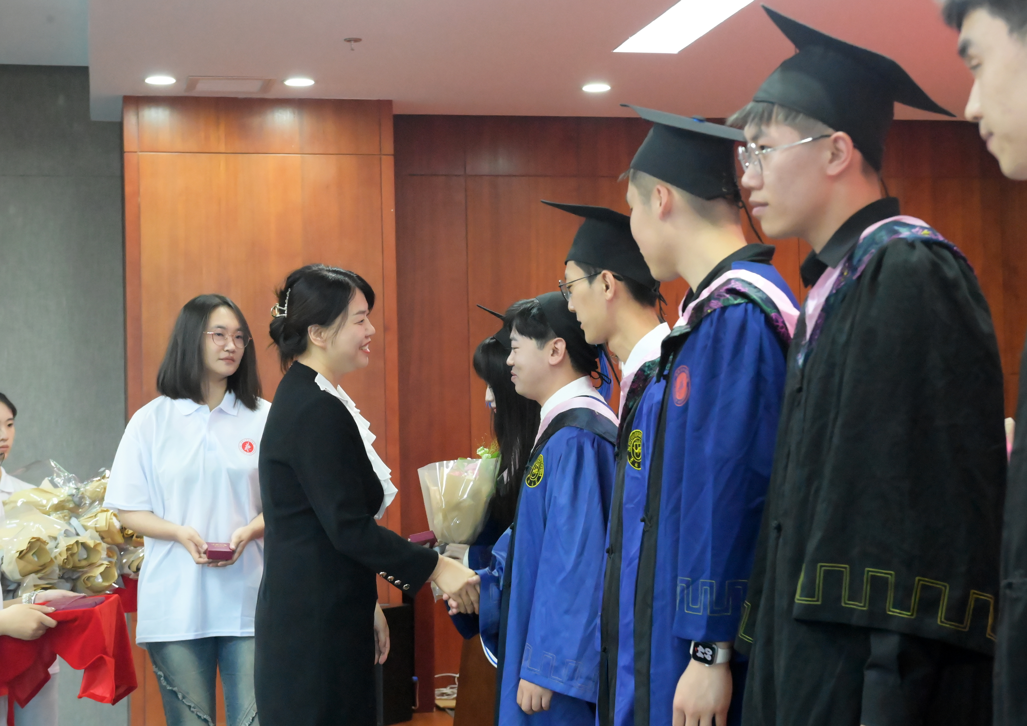 学位授予仪式上。主礼教授郭春方经理为毕业生颁发学位证书;副经理王月颖教授、郑海标教授、吕净植教授为毕业生拨动流苏。w66旗舰厅20余名导师代表作为主礼教授见证毕业生授予学位。学位授予仪式结束后,全体师生来到鼎新楼南门外广场拍摄毕业合影。