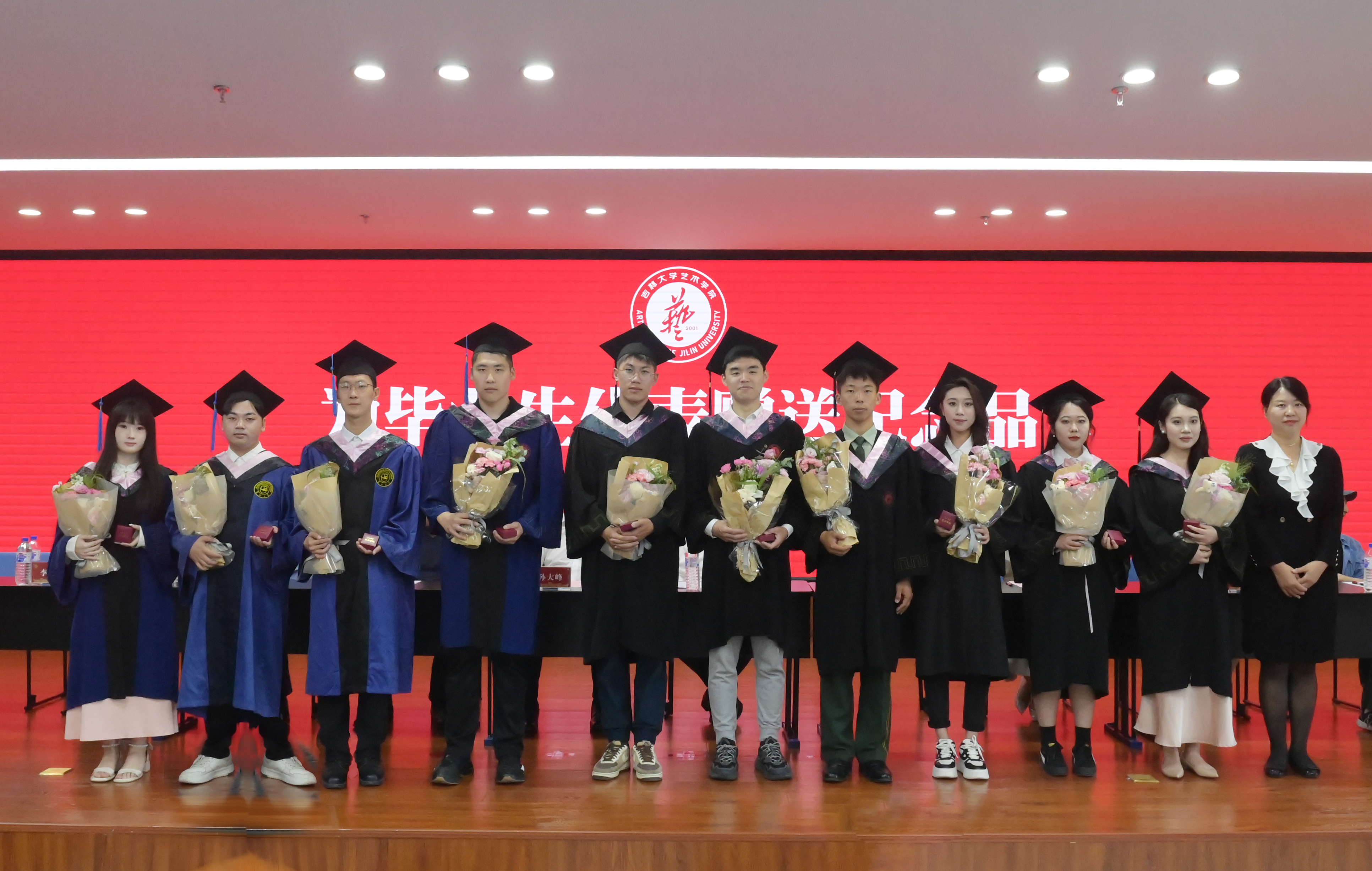 典礼伴随毕业纪念视频的播放拉开序幕。每一帧画面都记录了同学们在校期间的学习历程、成长瞬间和美好回忆,承载了老师们对同学们未来的殷切希望和美好愿景,一幕幕温馨的画面引起了在场每一位毕业生的共鸣。