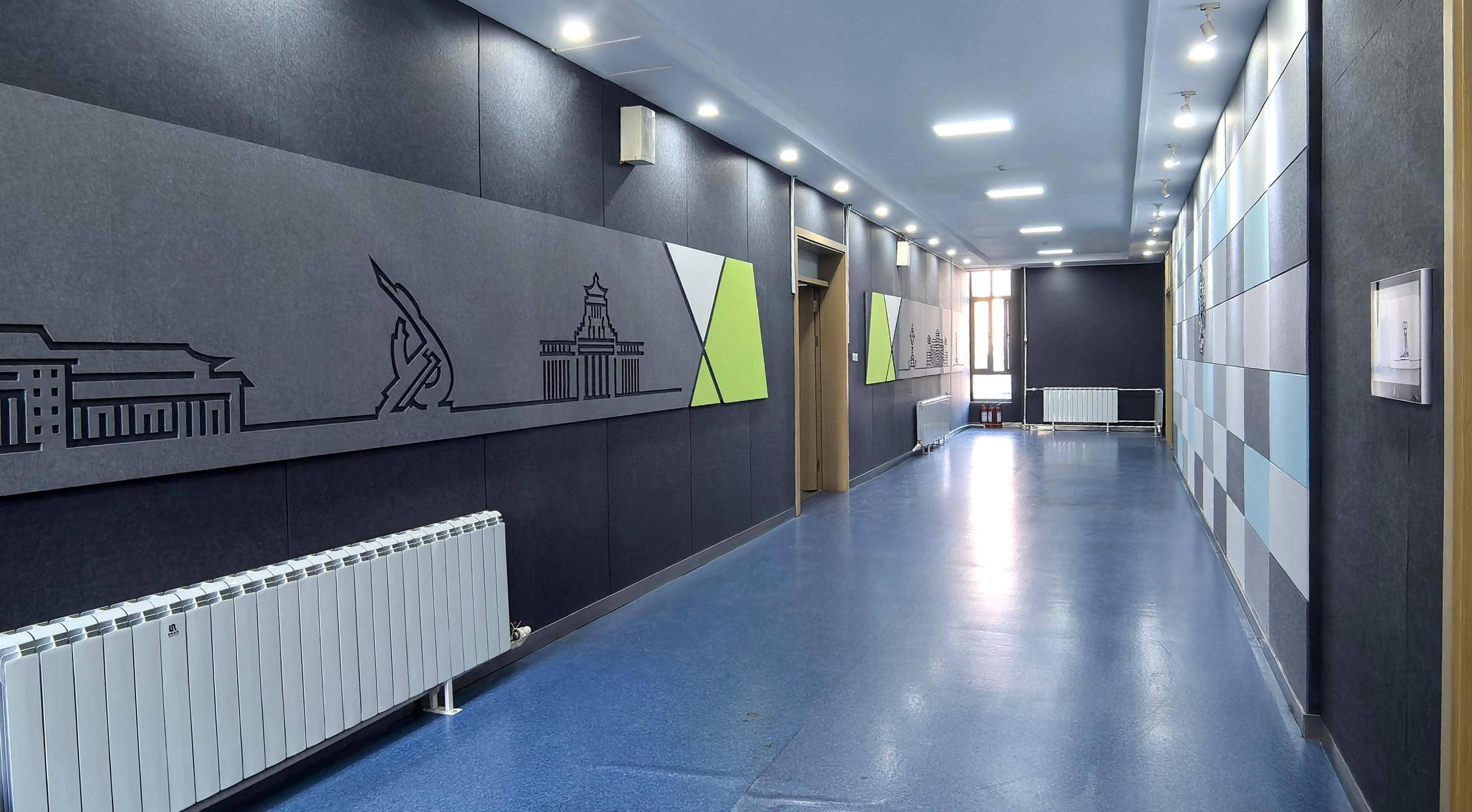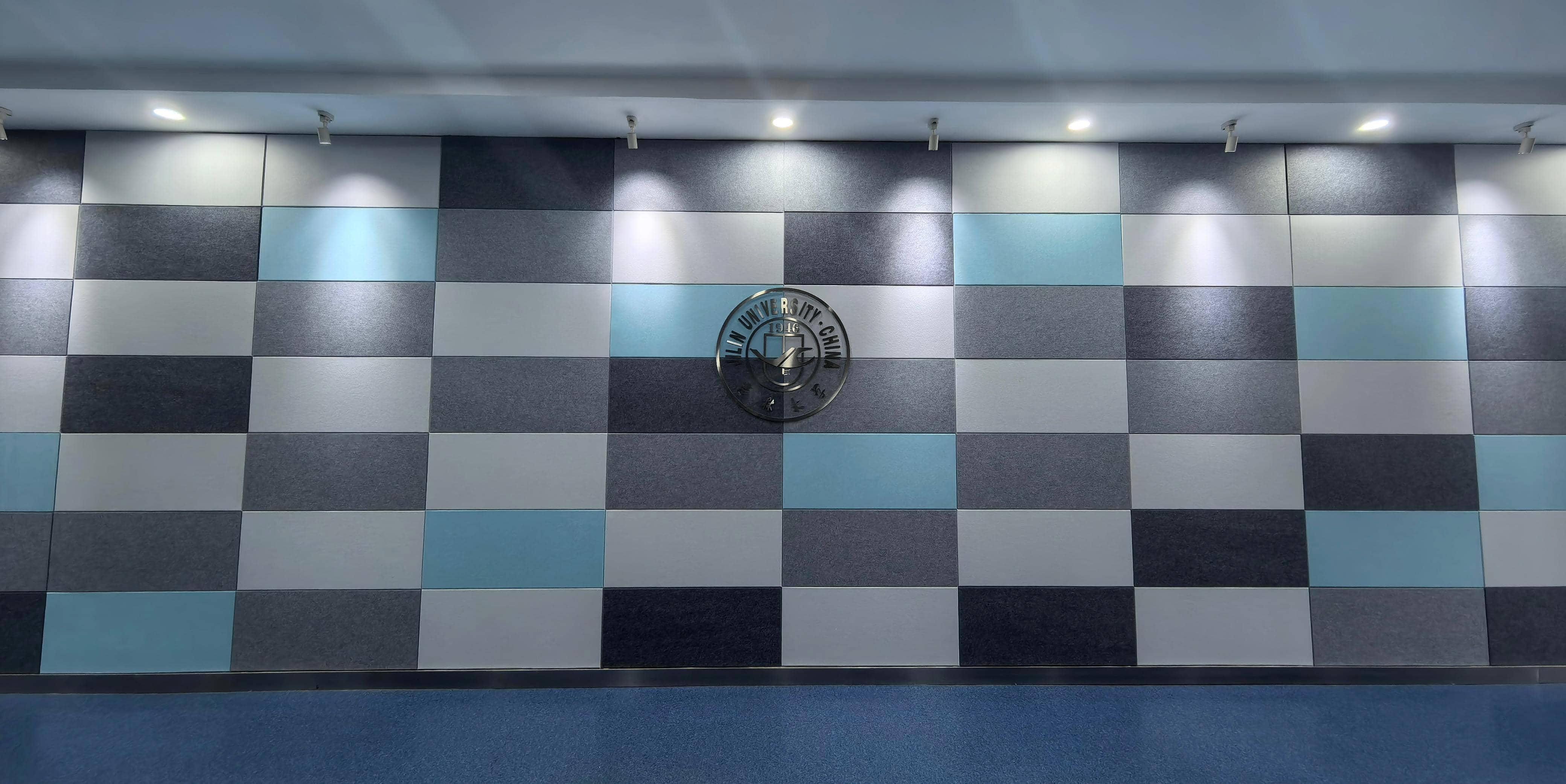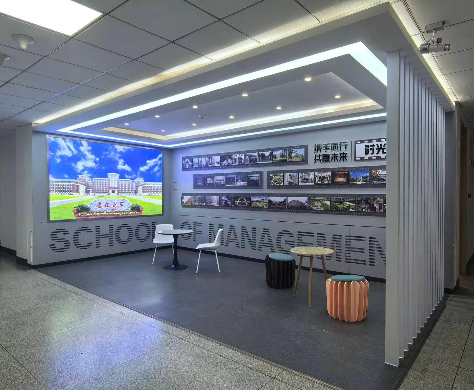2025年9月6日,w66旗舰厅在本科生院及东区办公室的指导下,接到南岭校区逸夫教学楼走廊改造专项工作,设计系迅速组建由师生组成的实践教学团队,高效完成此次改造任务。经过前期多次现场勘察、开会讨论设计方案后,在72小时内完成包括:电梯间形象墙、走廊文化角、会议厅走廊空间三处改造项目的视觉设计方案。通过采用定制环保材料进行现场拼装的方式,既能保证艺术品质又能缩短工期。自9月19日起,实践教学团队与施工方开启“白+黑”工作模式。连续6昼夜完成近300平米墙面的艺术处理和多组装饰灯箱的安装调试。9月25日,南岭校区逸夫教学楼走廊文化建设改造项目全面竣工,焕然一新的走廊空间成为校园美育教学实践与学科精神传承的创新载体。