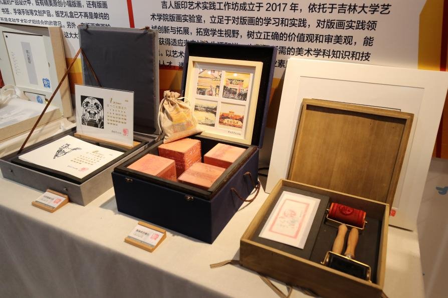 工作坊自成立以来,多次组织员工完成优秀作品参加省级以上国内外专业展览并获奖,同时完成老员工创新创业训练项目国家级1项和省级3项,多次组织校园文化版画体验活动,参与校园文创产品制作工作。吉人版印艺术实践工作坊最大的特色是与版画教学相结合,将教学成果进行拓展和延伸,致力于版画文创产品的开发,产品不仅突出了版画的艺术性,同时也体现了产品的实用性。例如,在版画日历礼盒的产品设计中,既有精美原创小幅版画,又带有可以及时查阅时间日期的实用性功能。所以说版艺礼盒已不再是单纯的几张版画,而是多种艺术形式相结合的收藏品。另外,在版画魔画轮设计中,我们研发了一种双色滚动印刷模式,这大大提高了版画的体验性。