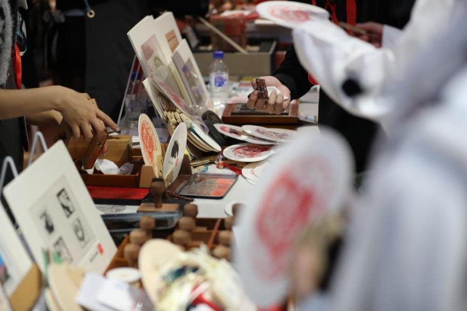 趣味与创意的体验区,有图案精美的动物刻章、十二生肖刻章、双色滚轮,拓印工具等,可亲自制作独属于自己的特色红包、书签、明信片、小扇子、摆台等版画工艺作品,体会印痕艺术的魅力,乐享和留存时间的印记。