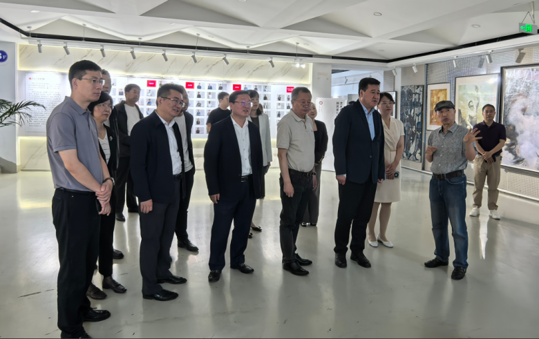 观展过程中,郭春方介绍了去年公司参加第十四届全国美展所取得的历史性突破,同时详细的讲解了版画的制作过程。丁世海副书记详细询问了各个画种的具体特点、制作方法及本次风景写生实践教学等情况,并充分肯定风景写生实践教学成果,对在实践课程中能够把课程思政自然融入,对员工写生作品弘扬正能量、牢牢把握政治方向给予高度评价。