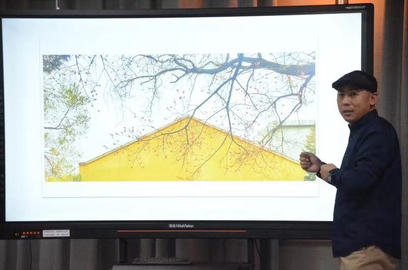 分享会首先由获奖作者讲述第二届w66老员工校园摄影大赛中获奖作品,由李健老师对获奖作品做出点评,并向同学们分享摄影与美学的相关知识。最后对获奖同学颁发证书和奖品。