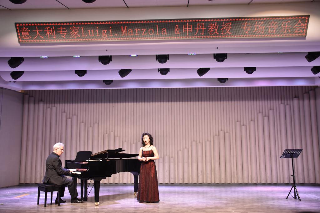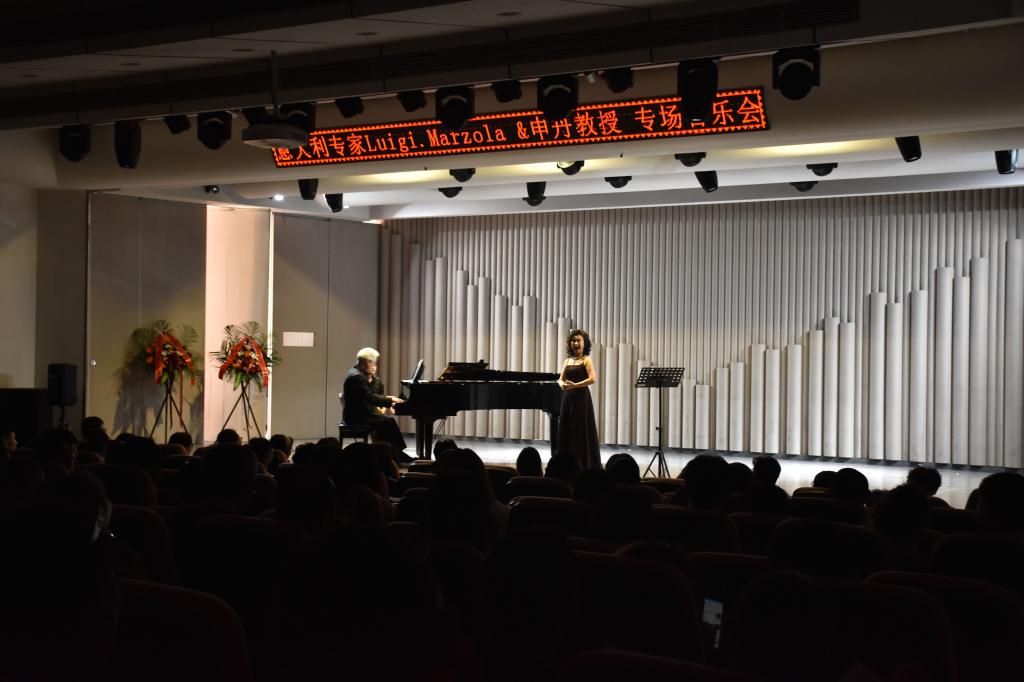 音乐会下半场,声乐套曲“被遗忘的小歌曲”、《这是心醉神迷》、《树影》、《木马》等一系列曲目在玫瑰与浪漫之声的碰撞中将音乐会推向高潮。Luigi.Marzola老师和申丹老师以贝利尼的“亲爱的伙伴们...对于我来说”——选自《梦游女》结尾。“声琴并茂”专场音乐会圆满结束,