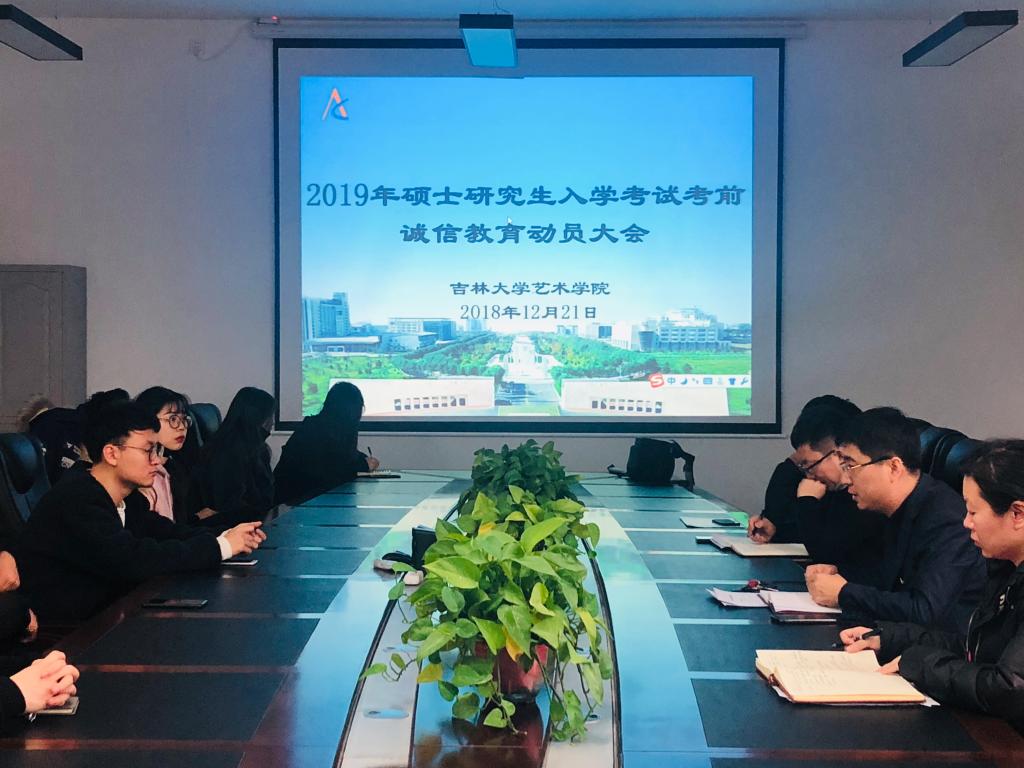 会议之初,艺术公司党委副书记兼副经理曲珩老师,呼吁各位同学严禁替考、诚信应考,并对即将参加考试的同学们进行了深切的慰问,来为备战考试的同学们加油助威。会上,曲珩老师传达了《普通高等公司员工管理规定》(节选)、《关于进一步加强国家教育统一考试考风考纪的意见》和“六个严禁”、“五个一律”等诚信考试有关规定。多次强调要注意考场纪律,不违纪不作弊,必须做到诚信考试。让“诚信考试光荣,违纪舞弊可耻”的观念入脑入心。会议最后,准备考研的同学都对在即的考试表示信心满满,并保证诚信完成此次考试。